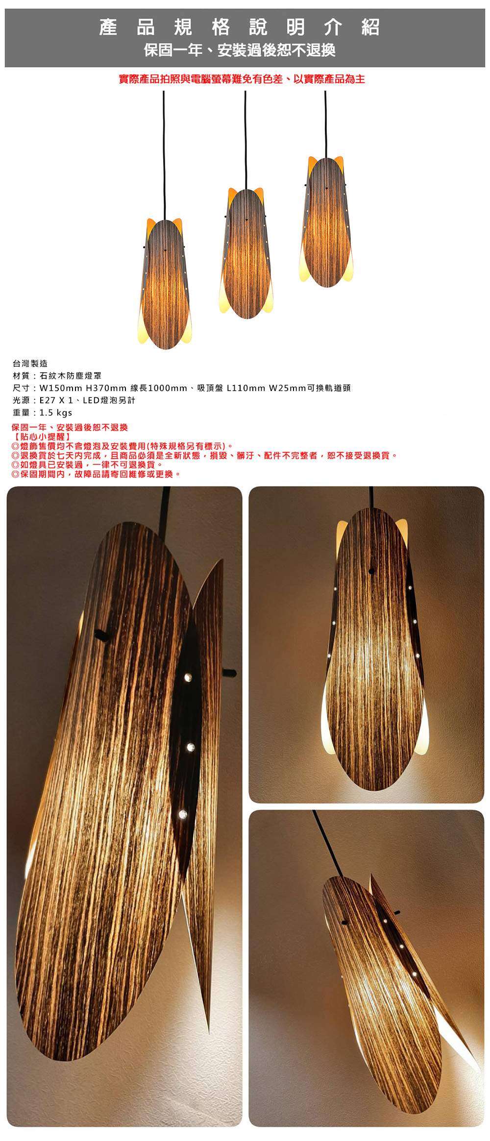 材質:石紋木防塵燈罩