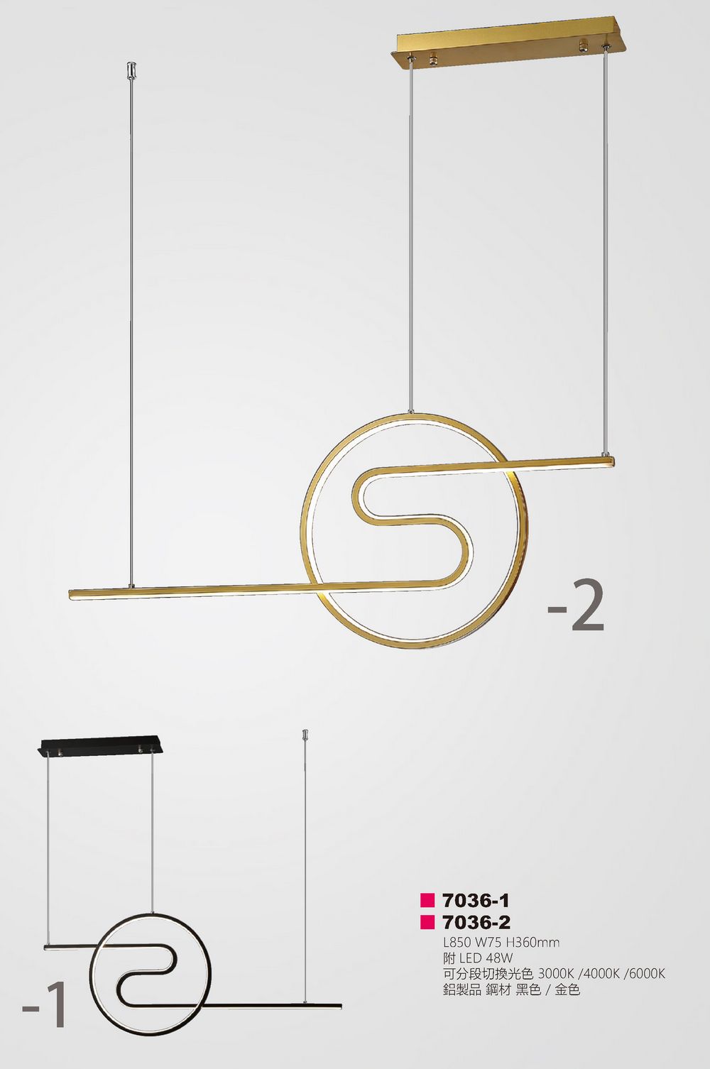 L850 W75 H360mm 附 LED 48W 可分段切換光色 3000K /4000K /6000K 鋁製品 鋼材 黑色 / 金色