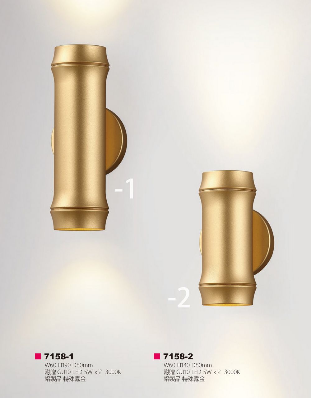 7158-1 W60 H190 D80mm 附贈GU10 LED 5W x 2 3000K 鋁製品 特殊霧金