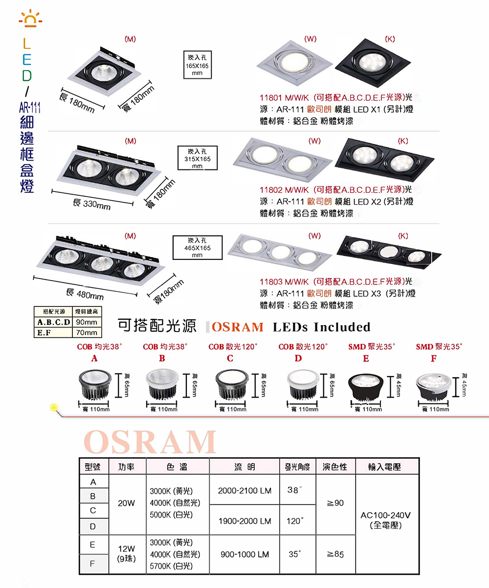 光源:AR-111 歐司朗 模組 LEDX3(另計)