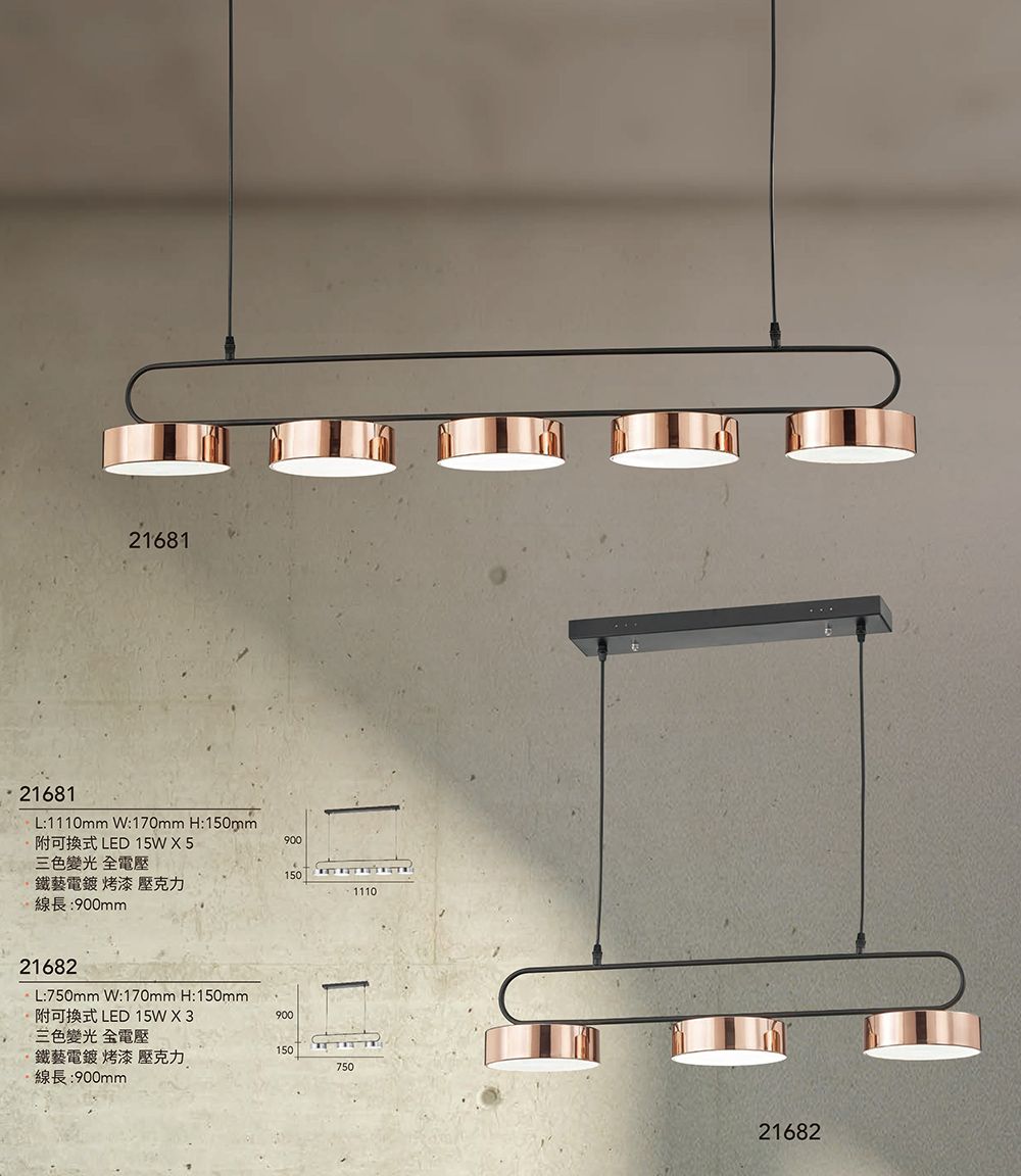 ・L:750mm W:170mm H:150mm ・附可換式LED 15W X 3 三色變光 全電壓 ・鐵藝電鍍 烤漆 壓克力 ・線長:900mm