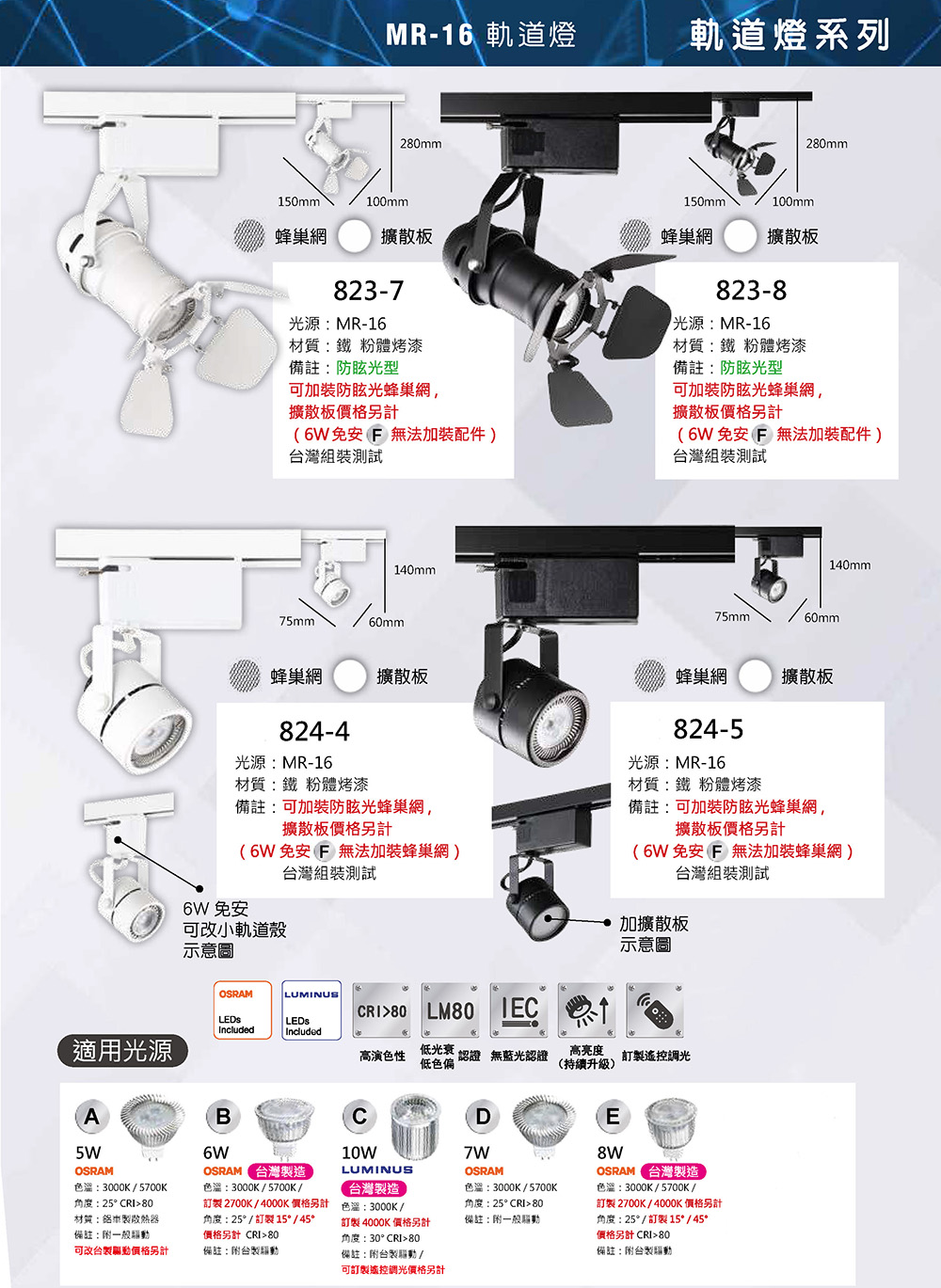 備註:可加裝防眩光蜂巢網,擴散板價格另計
