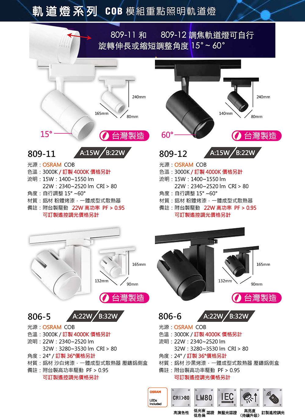備註:附台製驅動 22W 高功率 PF > 0.95